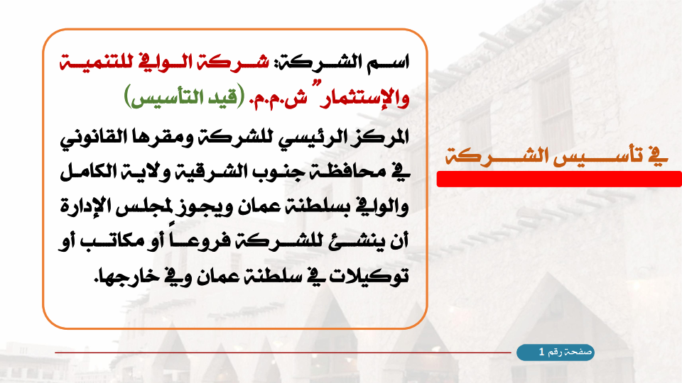 الوافي للتنمية والإستثمار ش.م.م (قيد التأسيس)